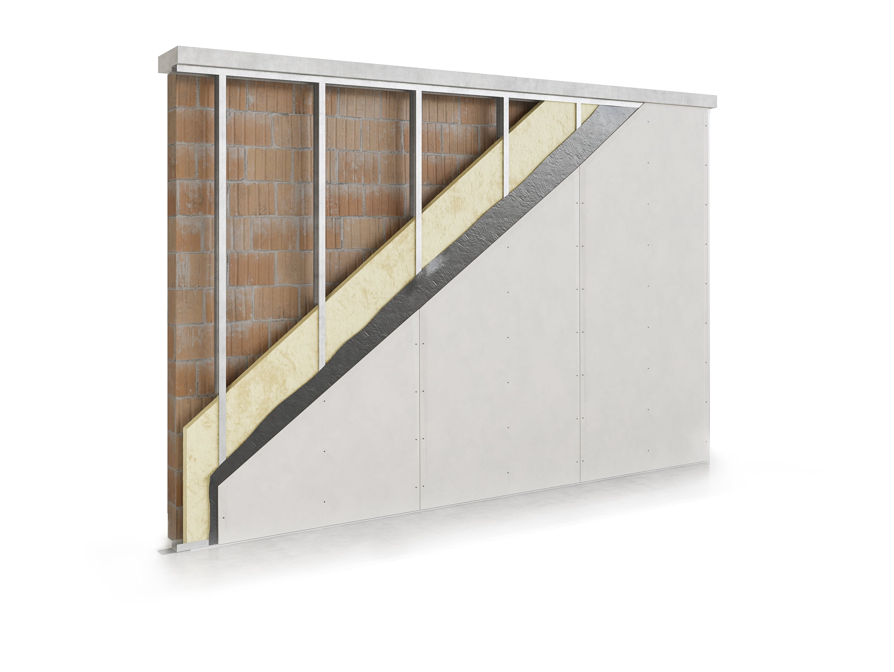 de 70 mm independizada del muro original y una o dos capas de placas de yeso en su cara