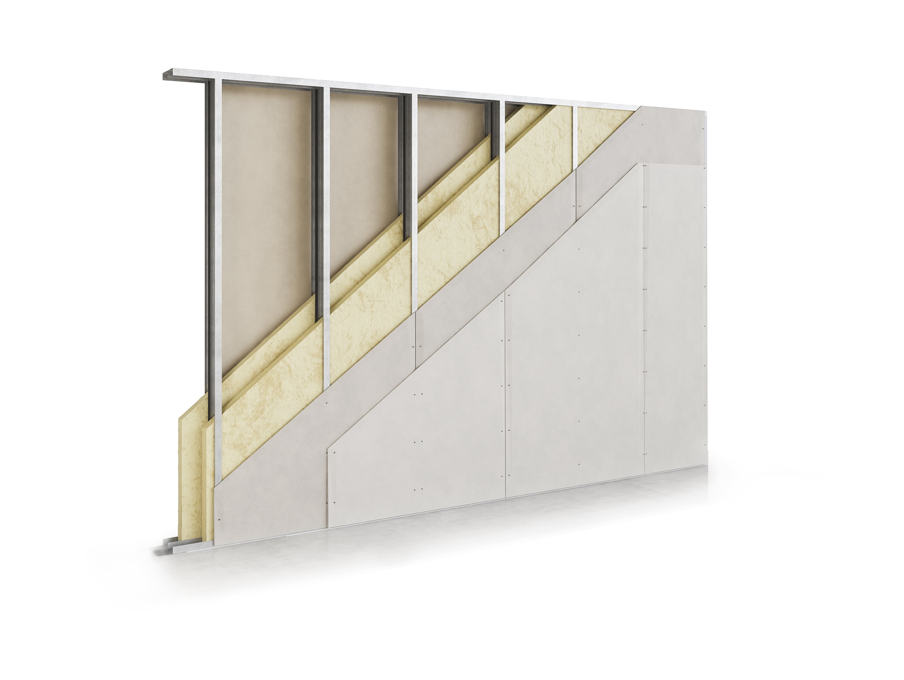 Conformada por doble perfilería y doble placa de cada lado. Cubre