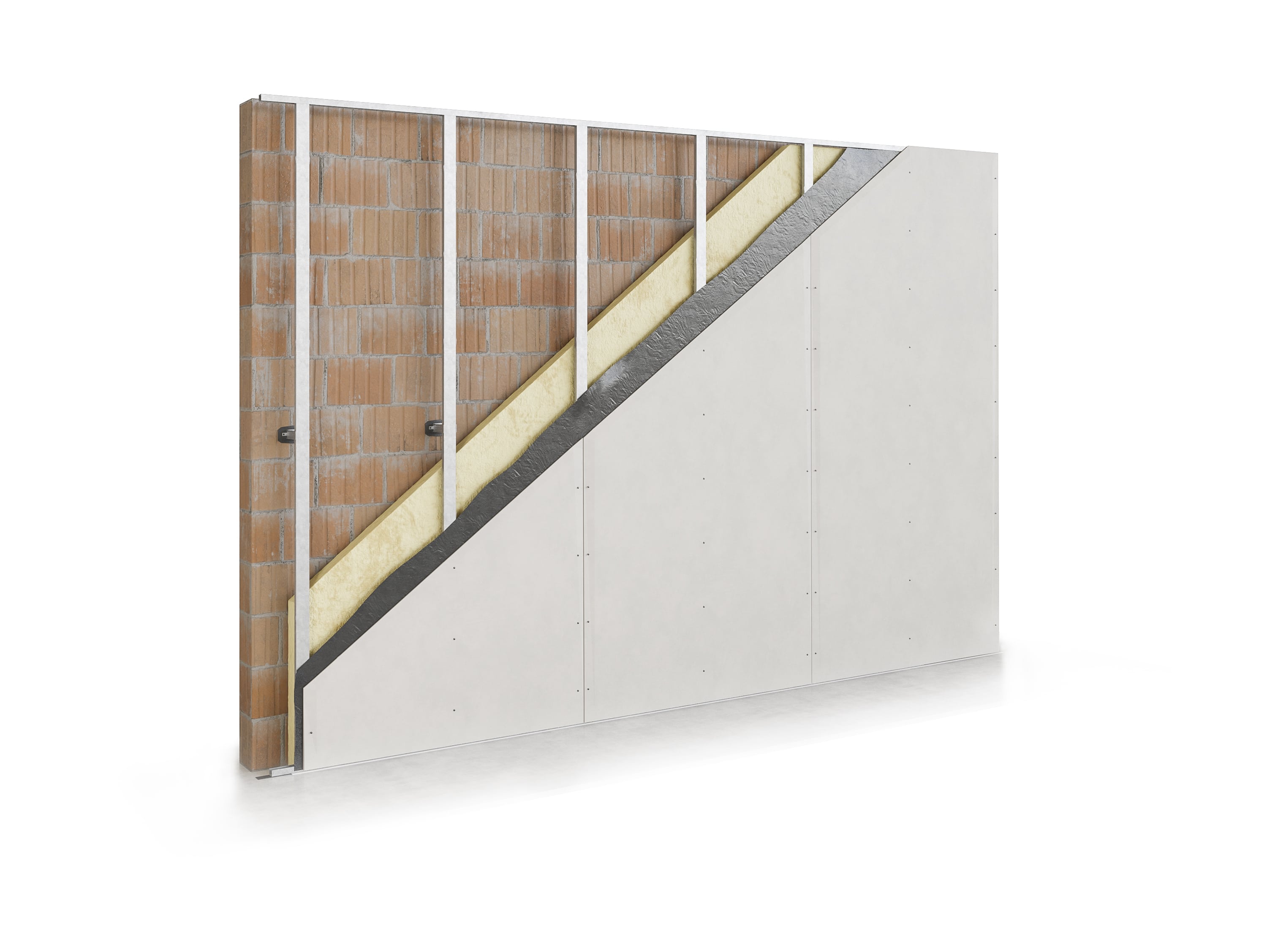 de 70 mm independizada del muro original y una o dos capas de placas de yeso en su cara